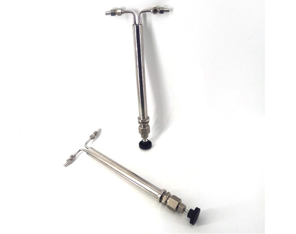 雙針式減壓閥采用超長調(diào)節(jié)通道和超長調(diào)節(jié)閥桿的設(shè)計,很大范圍的進行流量、壓力的調(diào)整。棒針式減壓閥TS-193A流量調(diào)節(jié)從每公鐘150毫升至4公升、壓力下降至5000Psig的345巴爾格。該減壓閥的減壓的主要原理是當(dāng)高壓樣水通過時,利用細長棒針與管內(nèi)孔之間的間隙,達到減壓的目的。當(dāng)減壓閥的入口處壓力一定時,只須改變棒針的插入深度,即可調(diào)整減壓閥出口壓力,控制樣品流量。
