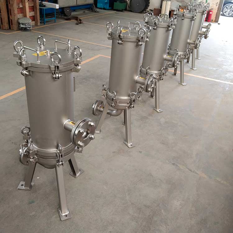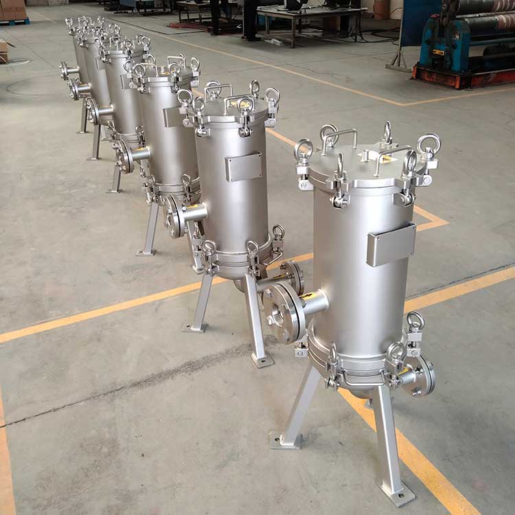 精密過濾器(又稱作保安過濾器),筒體外殼一般采用不銹鋼材質制造,內部采用PP熔噴、線燒、折疊、鈦濾芯、活性炭濾芯等管狀濾芯作為過濾元件,根據不同的過濾介質及設計工藝選擇不同的過濾元件,以達到出水水質的要求。